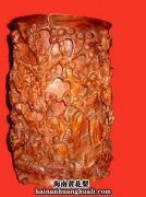 海南黄花梨笔筒,彰显出了海南黄花梨行云流水般的天然丽质,也尽显出其浓厚的文人气息。