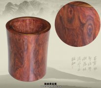 明式海南黄花梨笔筒彰显出了海南黄花梨行云流水般的天然丽质,也尽显出其浓厚的文人气息。